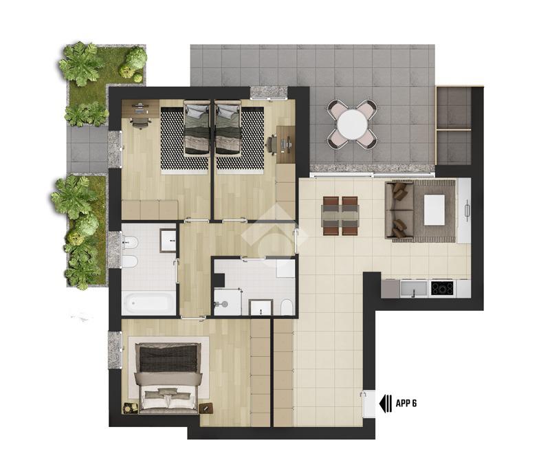 Gli appartamenti sono studiati per garantire elevati standard qualitativi: spazi ben distribuiti, ambienti luminosi e materiali selezionati con cura assicurano comfort, durabilità e una piacevole vivibilità quotidiana. Ogni dettaglio costruttivo è pensato per rispondere alle esigenze contemporanee in termini di efficienza, bellezza e funzionalità.