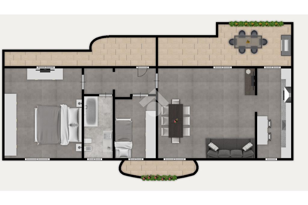 All’ingresso dell’appartamento, si trova un comodo disimpegno che conduce alla zona giorno, composta da un luminoso soggiorno con angolo cottura. L’ambiente risulta particolarmente piacevole e ben illuminato grazie alla doppia esposizione ed all’accesso diretto al terrazzino, spazio ideale per momenti di relax all’aperto.