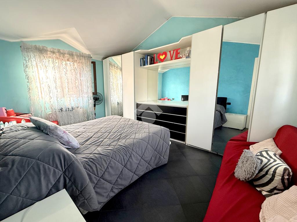 Il disimpegno accompagna poi alla zona notte, ben separata dalla zona giorno, dove troviamo, la camera matrimoniale, spaziosa e confortevole, la cameretta, con accesso diretto al secondo balcone, ed il bagno finestrato dotato di vasca. A completare la proprietà, la cantina ed un box auto.