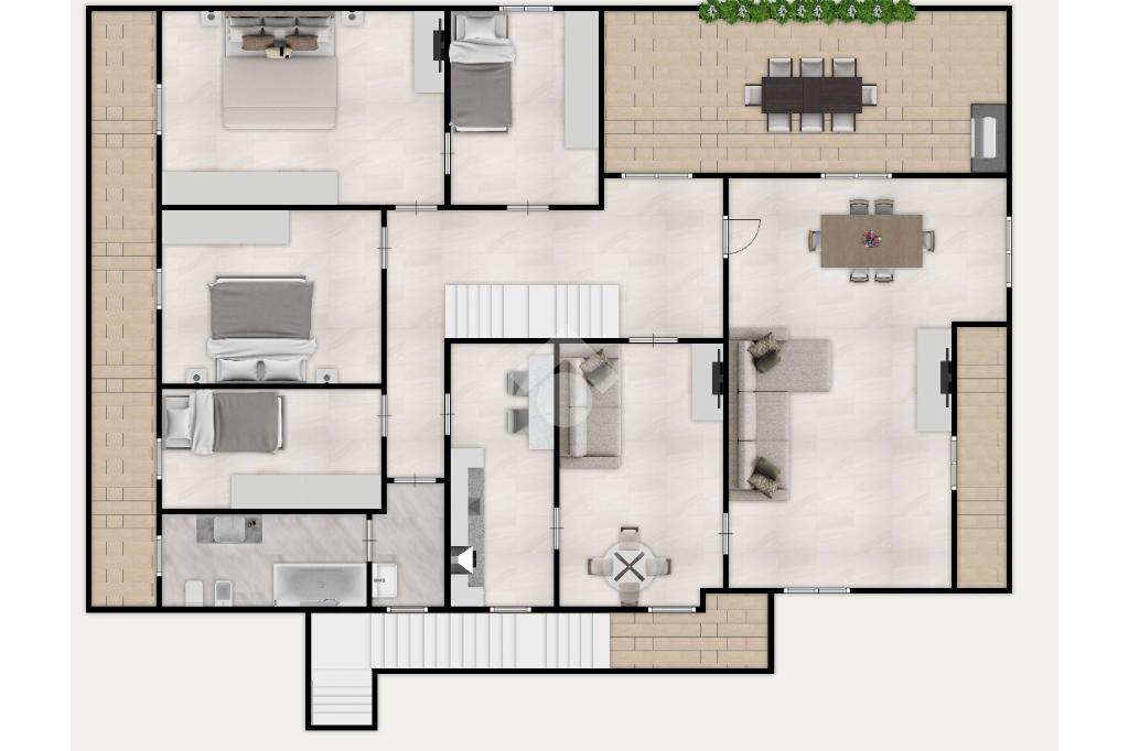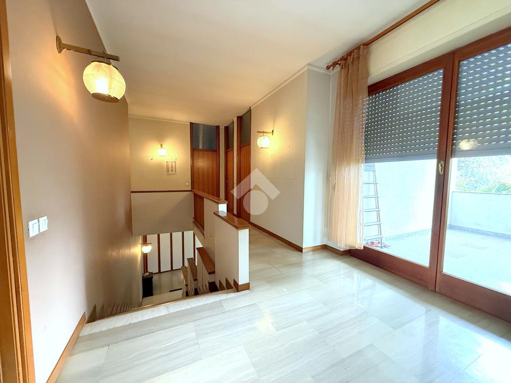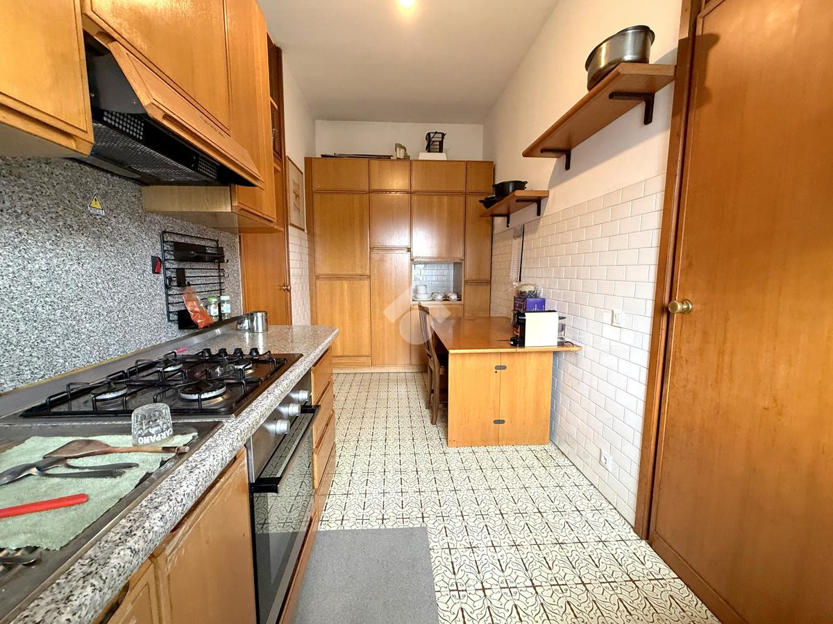 Il primo piano ospita invece un ampio appartamento caratterizzato da spazi luminosi e ben organizzati. Qui troviamo un grande terrazzo, un soggiorno, una sala da pranzo, la cucina, quattro camere da letto ed un bagno con vasca. La presenza di tre balconi garantisce ulteriore luminosità e piacevoli affacci sull’esterno.